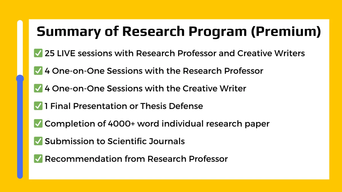 ✓ Students get two personalized 1-1 sessions with a research professor and two individual 1-1 consultations with creative writer.