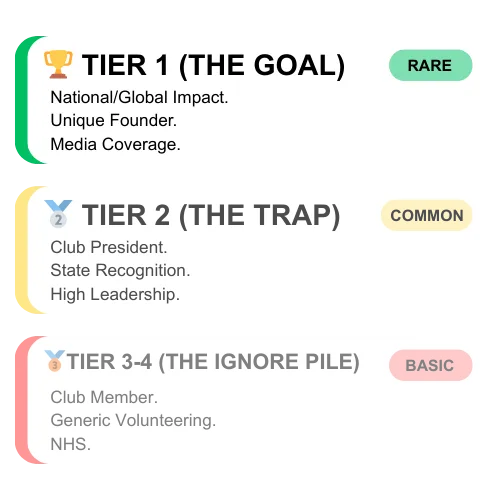 Admissions officers instantly spot "resume fillers" like general volunteering or club memberships. These prove participation, not the Impact required for Top 25 programs.